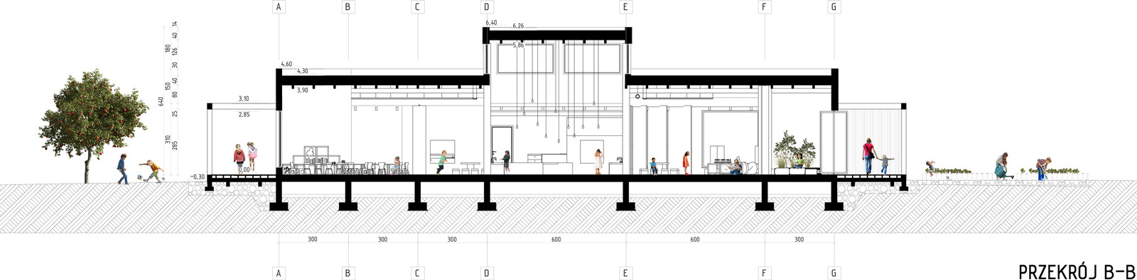 W zaprojektowanym przedszkolu dzieci nie są dzielone na grupy wiekowe, dzięki czemu mogą uczyć się od siebie. Paulina Pabian mówi, że zaproponowała przedszkole odmienne od istniejących i wyraźnie eksperymentalne. Tłumaczy, że chciała, by przestrzeń była jak najbardziej różnorodna i nie ograniczała dzieci.