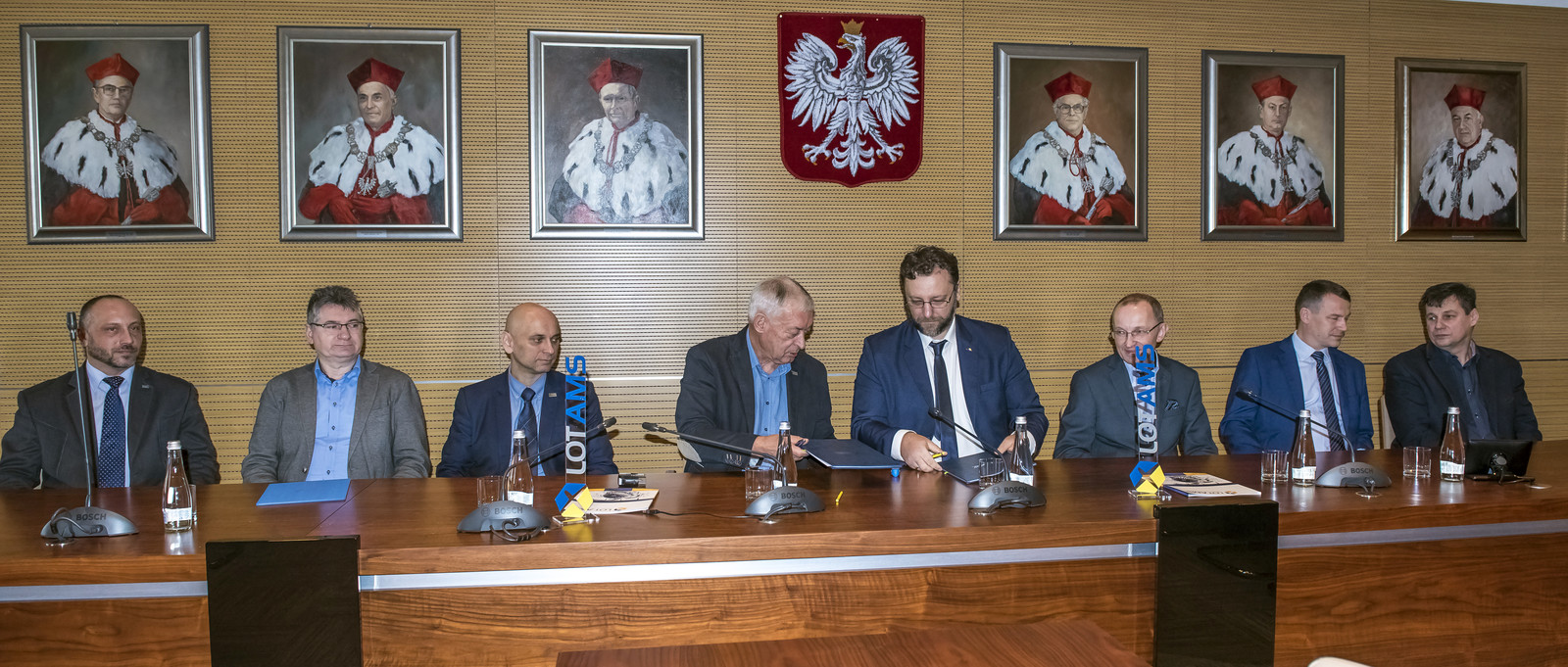 Umowę podpisali prof. dr hab. inż. Tadeusz Markowski, Rektor Politechniki Rzeszowskiej i Marcin Kwietniak, Dyrektor Biura Marketingu w LOT Aircraft Maintenance Services Sp. z o.o.