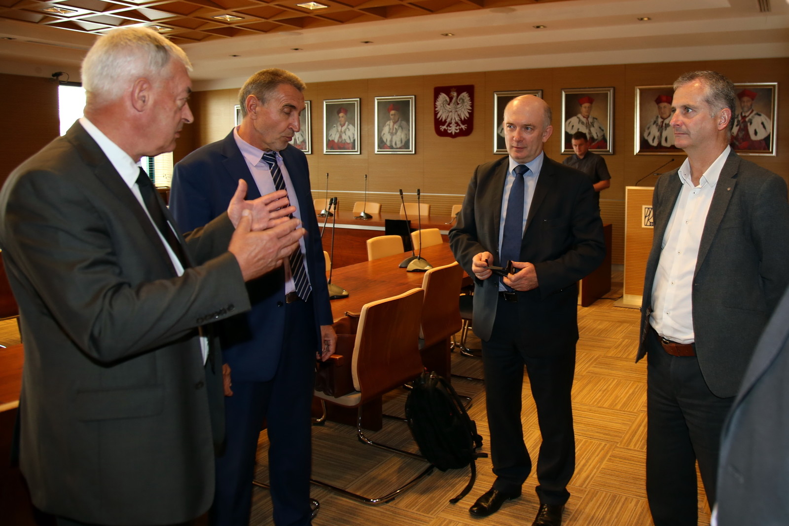 11 lipca br. w Sali Senatu PRz odbyło się spotkanie władz uczelni z przedstawicielami firmy BOMBARDIER Aerospace. Dotyczyło przyszłej współpracy naukowo-badawczej w dziedzinie innowacyjnych technologii. Prof. dr hab. inż. Tadeusz Markowski, rektor PRz, prof. dr hab. inż. Grzegorz Budzik, prorektor ds. nauki, oraz dr hab. inż. Mariusz Oleksy, prof. PRz, prorektor ds. rozwoju i kontaktów z gospodarką, rozmawiali na temat współpracy z Michaelem Curranem, dyrektorem w Aerostructures and Engineering Services i Januszem Kućminem, generalnym przedstawicielem Bombardiera na Polskę. Możliwość kooperacji miałaby dotyczyć technologii stosowanej w lotnictwie, m.in. kompozytów, szybkiego prototypowania oraz symulacji konstrukcji lotniczych wspomaganych komputerowo.