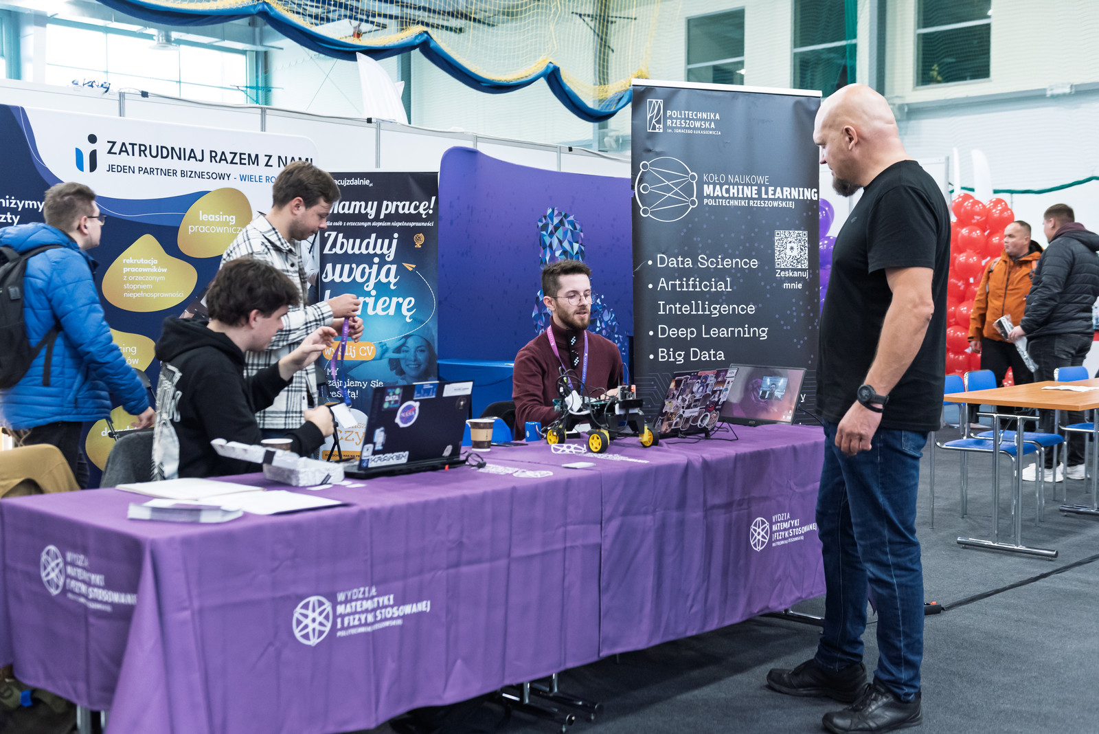 Istotnym elementem wydarzenia był odbywający się równolegle Kolaż Kół Naukowych Politechniki Rzeszowskiej. Nasi studenci zaprezentowali innowacyjne projekty, demonstrując, jak wiedza teoretyczna i pasja przekładają się na realne rozwiązania technologiczne. Była to doskonała inspiracja dla młodszych roczników do zaangażowania się w działalność naukową i podnoszenie jakości kształcenia na uczelni.